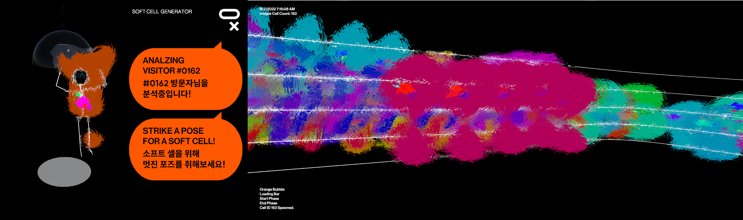 Soft Cells persist after a visitor leaves, accumulating and interacting with others to form an evolving collective ecosystem.